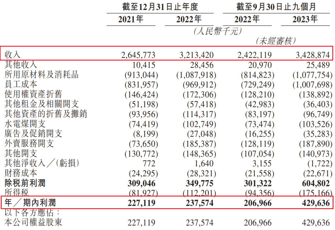 招股书显示,2021年-2023年9月,其收入分别为26.46亿元、32.13亿元及34.29亿元;溢利分别为2.27亿元、2.38亿元及4.30亿元。