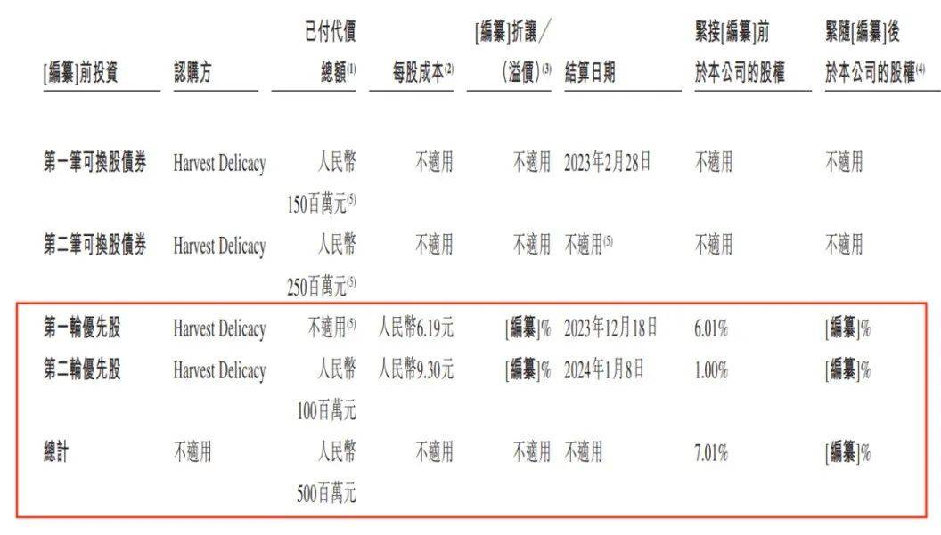 同一天,小菜园方面又与Harvest Delicacy订立协议,Harvest Delicacy同意以1亿元的等值美元代价认购第二轮优先股,每股成本9.30元。