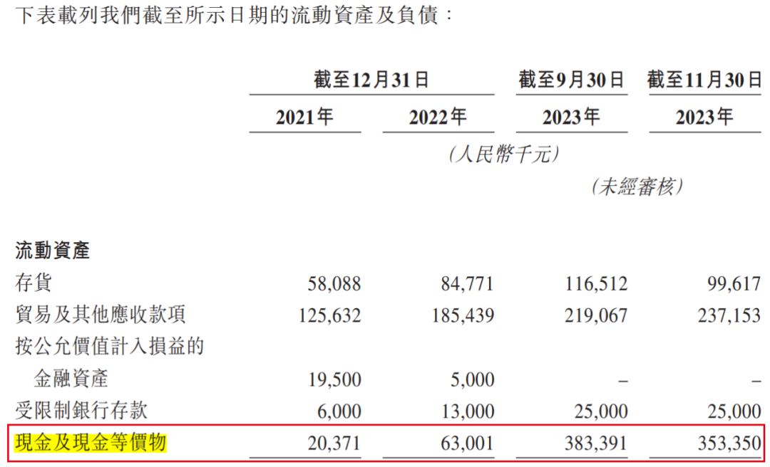 过往数年,尽管小菜园的业绩一路走高,但企业的现金流并不算多。2021年-2023年11月30日,小菜园的现金及现金等价物分别为2037.1万元、6300.1万元及3.53亿元。