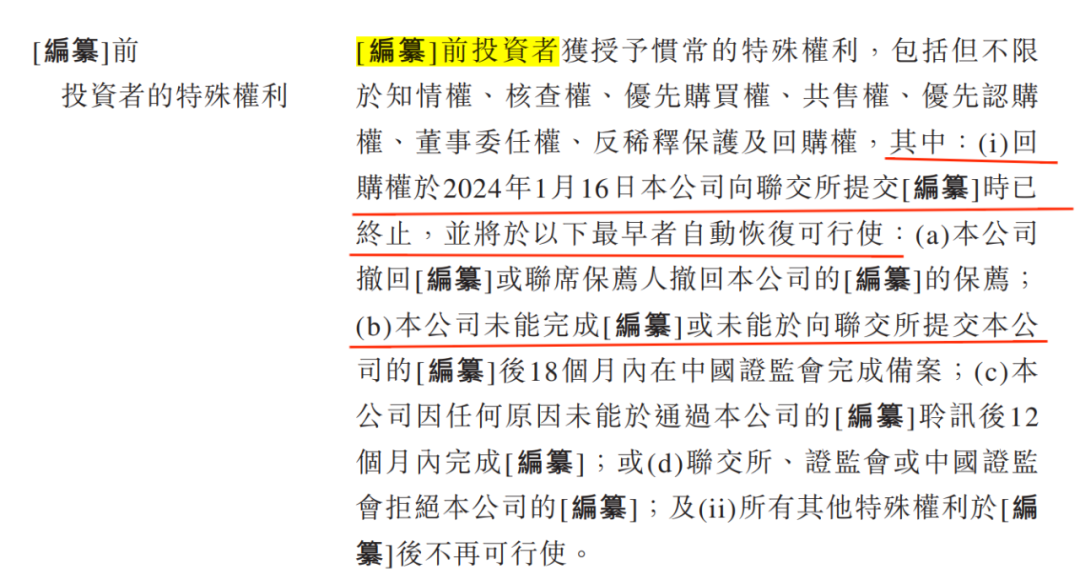 转换为优先股之后,加华资本则对小菜园的上市有了要求。按照招股书的说法,投资者拥有一项回购权,这项权利在小菜园递表港交所时终止,但若出现未能完成上市等情况,这项权利将自动恢复行使。