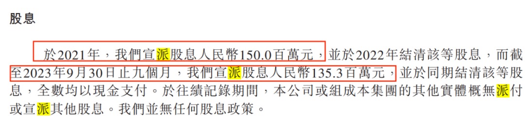 招股书显示,2021年,公司派息1.5亿元;2023年前9月,小菜园再次派息1.353亿元,上述股息均以现金支付完毕。