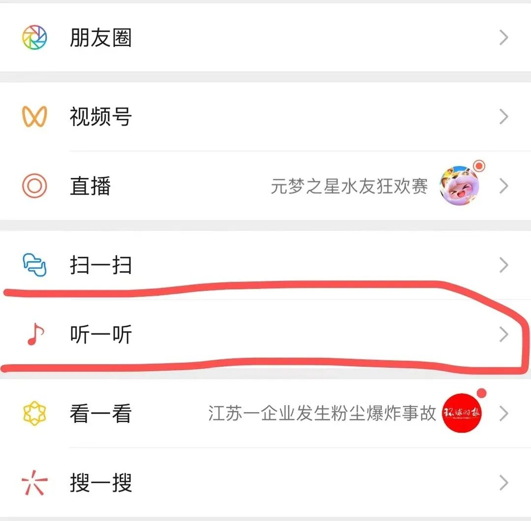 最近几天,微信“听一听”正在进行灰度测试,越来越多的微信用户的“发现”页面多了一项功能,默认位置在“扫一扫”下方、“看一看”上方。如果你还没有被灰度到,也不必着急,只要下拉微信“对话”页面(第一屏),即可在页面最上方找到“音乐”“音频”“最近播放”三个标识,它们提供的功能与“听一听”完全重叠。