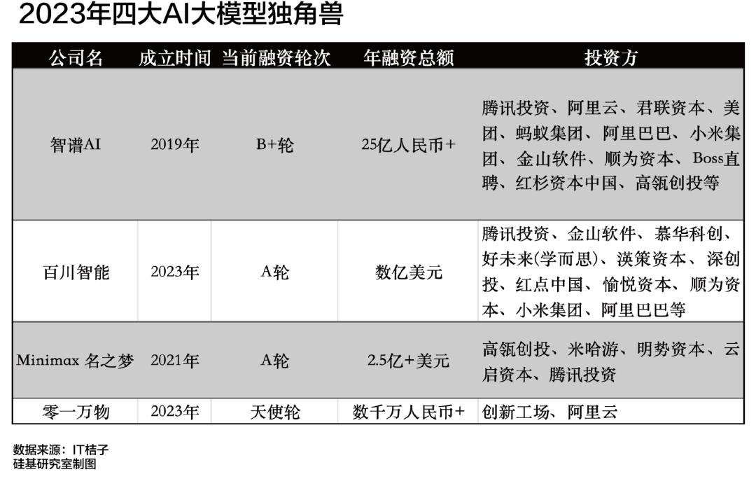 AIGC及大模型领域的独角兽一共有4家 图源:硅基研究室
