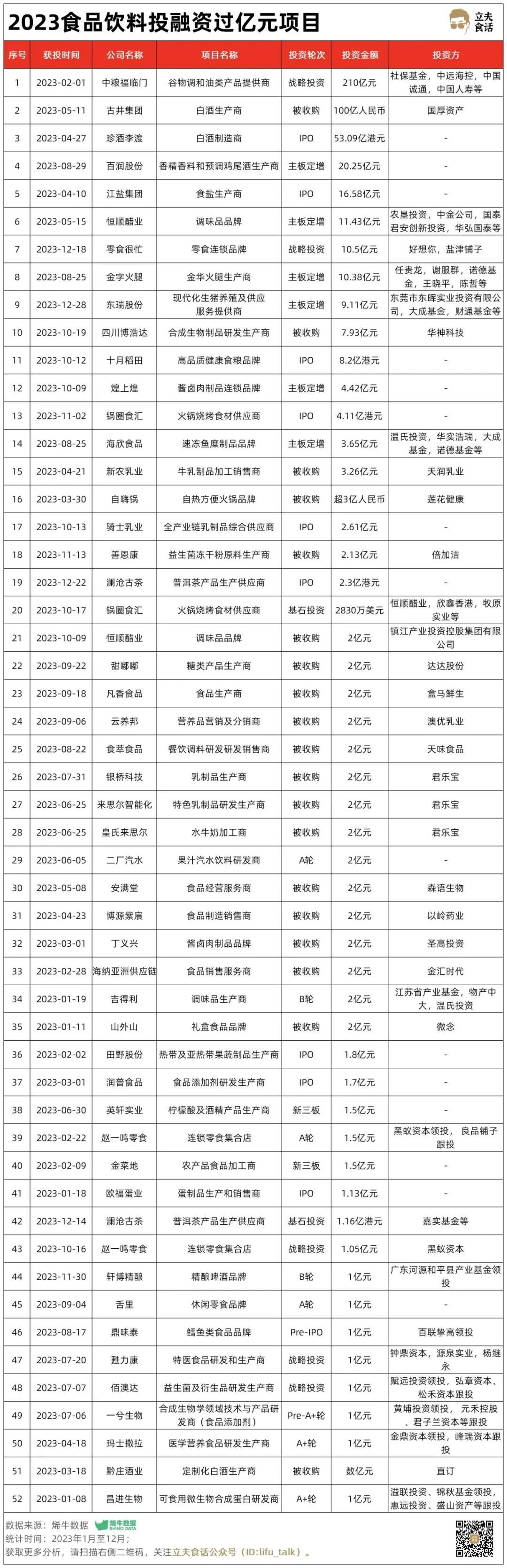 2023年食品饮料融资总表:功能性、供应链、垂直品类有机会
