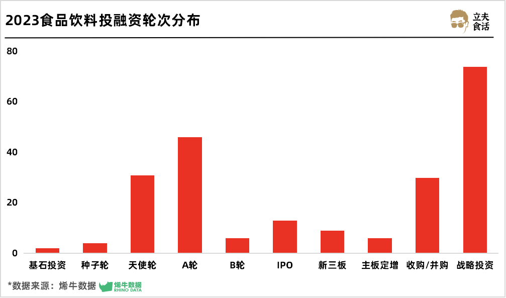 从融资轮次来看,去年的食饮融资主要集中在天使轮、A轮等战略融资。
