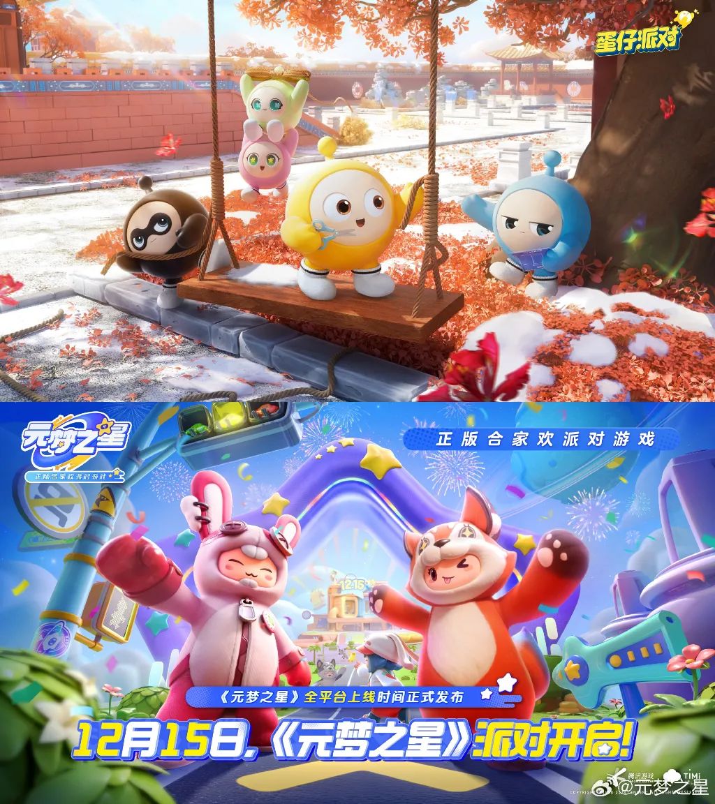 年末则由派对游戏掀起一场行业风暴。同样的派对游戏+UCG玩法,同样挤在大众化合家欢路线,《蛋仔派对》与《元梦之星》不可避免地剑拔弩张,在各自的游戏内容和营销活动上大展身手。