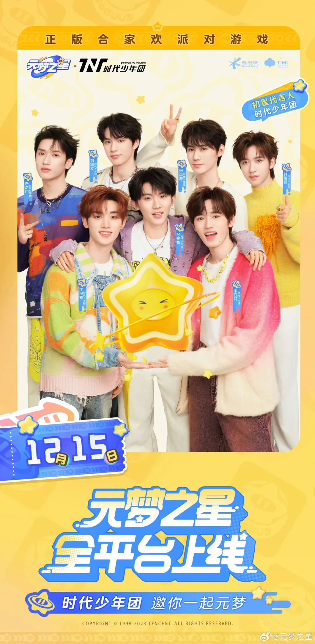 《元梦之星》也带上时代少年团玩,推出TNT专属头饰、“时代少年团”专属称号、代言人手绘表情包,以及定制的联名地图“时代星舞台”。玩家到舞台打卡,乘电梯上空可以看到烟花在身边绽放。这让粉丝大呼如同亲临演唱会现场,而“来元梦给时代少年团放烟花”的话题也一度冲上微博热搜。