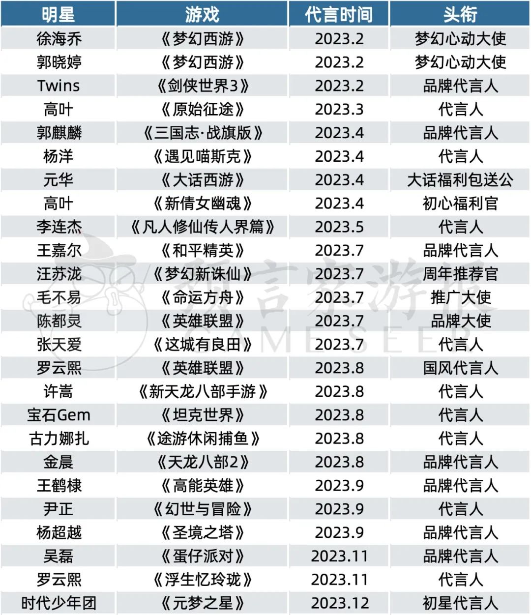 近一年来,新增明星代言游戏的不完全整理