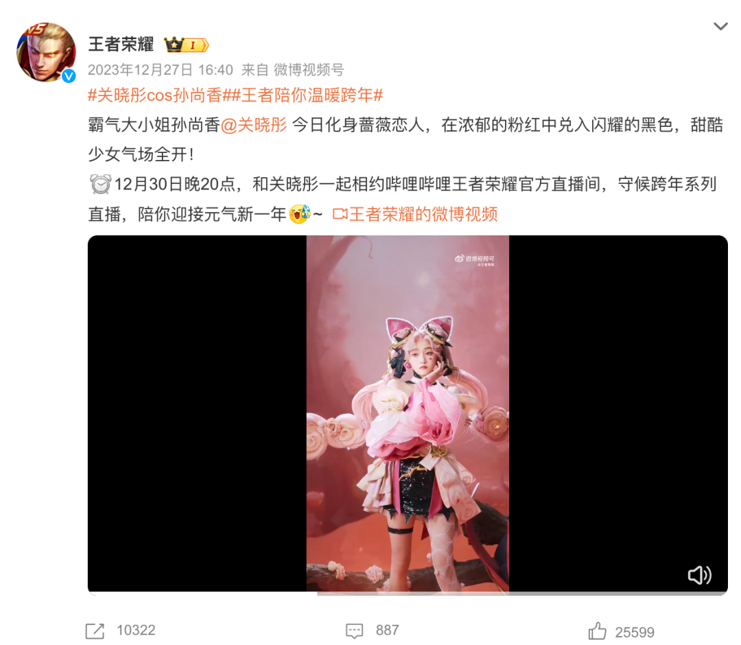 近期,《王者荣耀》于官微发布的一系列明星联名cos再次上大分。