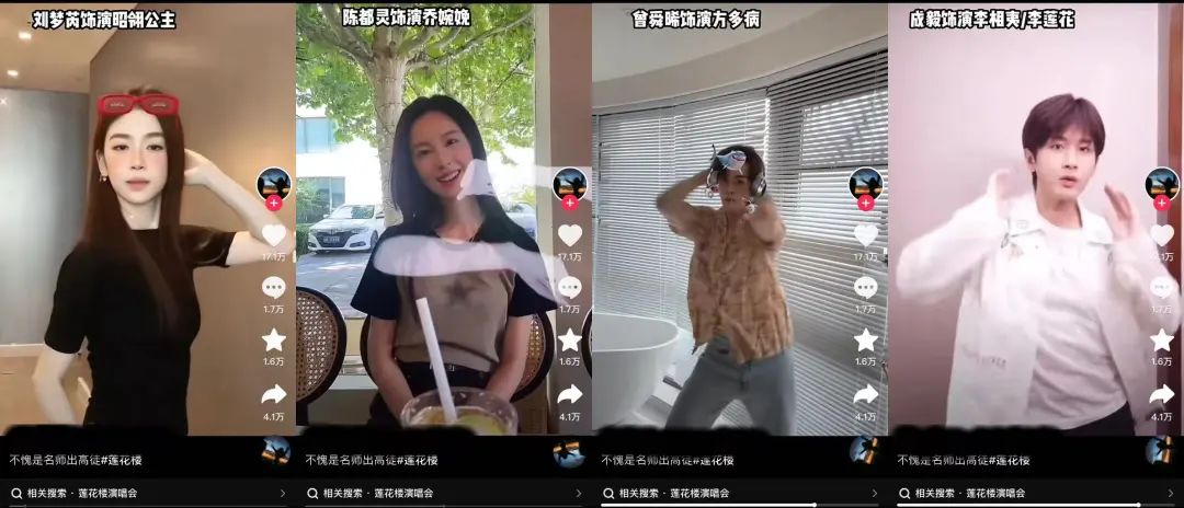 在联动艺人进行宣传的部分,短视频平台也为宣传市场带来新的增量,比如《莲花楼》热度破万时的主角团舞蹈挑战,累计点赞超过了1000万。据统计,去年暑期档艺人发布剧宣相关视频的播放总量近33亿,同比增长了15%。![]()