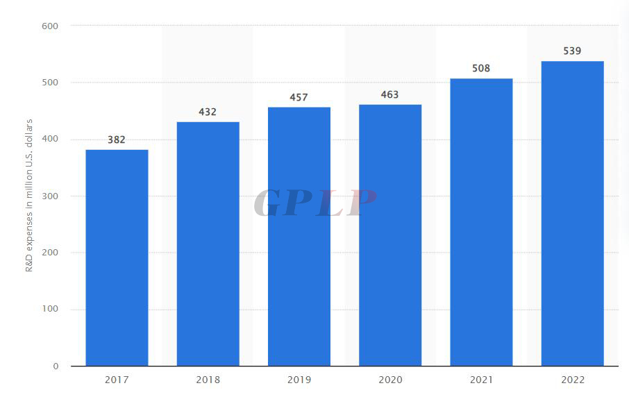 2017年-2022年硕腾研发投入费用,数据来源:网络公开数据,单位:百万美元