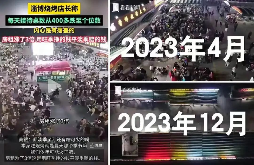 不过,淄博烧烤自9月开始进入了淡季,有的门店单月营收堪堪4000元,更有门店一整天只有1位顾客,异地开出的淄博烧烤店倒下了一大半。大量跟风入局的餐饮创业者痛心哭诉,“亏了,用旺季挣的钱在平淡季赔的钱。”