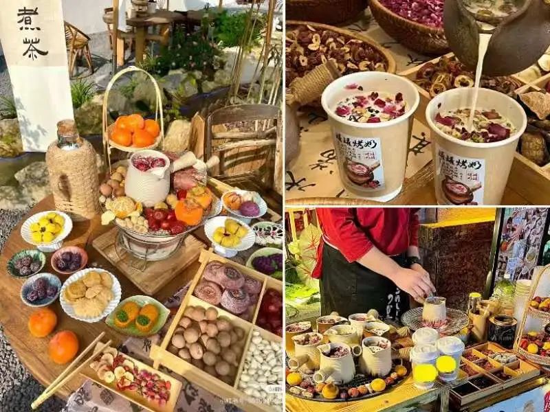 一个小火炉,烤着热腾腾的棉花糖、年糕、水果,再配上诗意的文字及各类茶品,这种打卡景象瞬间风靡全网。