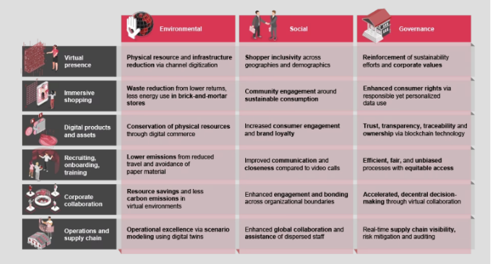 此外,元宇宙可以为品牌和零售商提供ESG的可持续和道德商业实践。通过策划虚拟活动和寓教于乐的机会,虚拟世界使品牌能够强化企业价值观、品牌形象、消费者意识和透明度,却大量减少了印刷媒体等传统渠道的资源消耗。例如,在2021年和2022年的国际消费电子展上,宝洁公司推出了LifeLab和BeautySphere这两个沉浸式虚拟世界,参观者可以在众多展示宝洁品牌和产品的互动区域中畅游,同时向消费者介绍宝洁在可持续发展方面所做的努力(比如“成分”)。