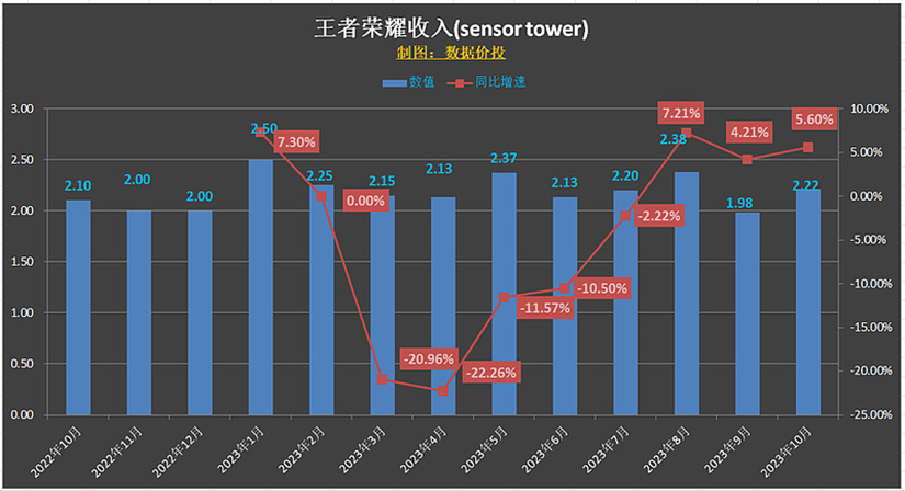 虽然《王者荣耀》无论是“吸金力”还是在用户粘性上,都是国内公认的手游Top1,但不可否认,作为一个已经上线8年的老牌游戏,《王者荣耀》的下滑不可避免。根据Sensor Tower数据,《王者荣耀》全球 App Store和Google Play的月收入自2022年10月起一直保持在2.0亿美元至2.5亿美元之间,并未有太大波动。