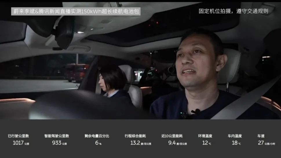 蔚来创始人李斌实测蔚来150度电池直播截图