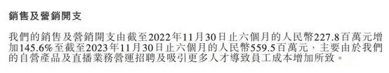 虽是玩笑话,但是从财报数据上来看,显然利润率不升反降。实际上,2023财年下半年(2022年12月-2023年5月),东方甄选为了挖掘新流量已经加大了销售及营销开支,下半年相较于2023财年上半年环比增长70%,已经导致下半年净利润环比下降32.8%至3.9亿元。