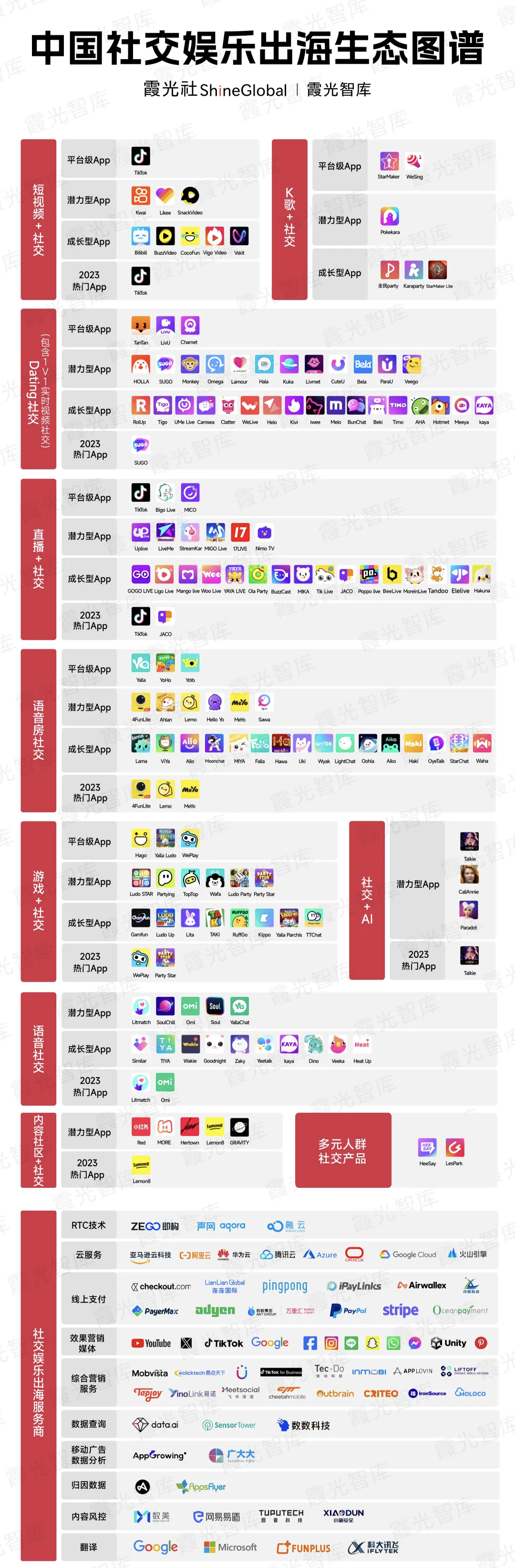 那么,在风起云涌的2023年,社交娱乐各细分赛道的竞争格局发生了哪些变化?哪里还存在“掘金”的可能?新的一年社交娱乐出海又有哪些趋势?