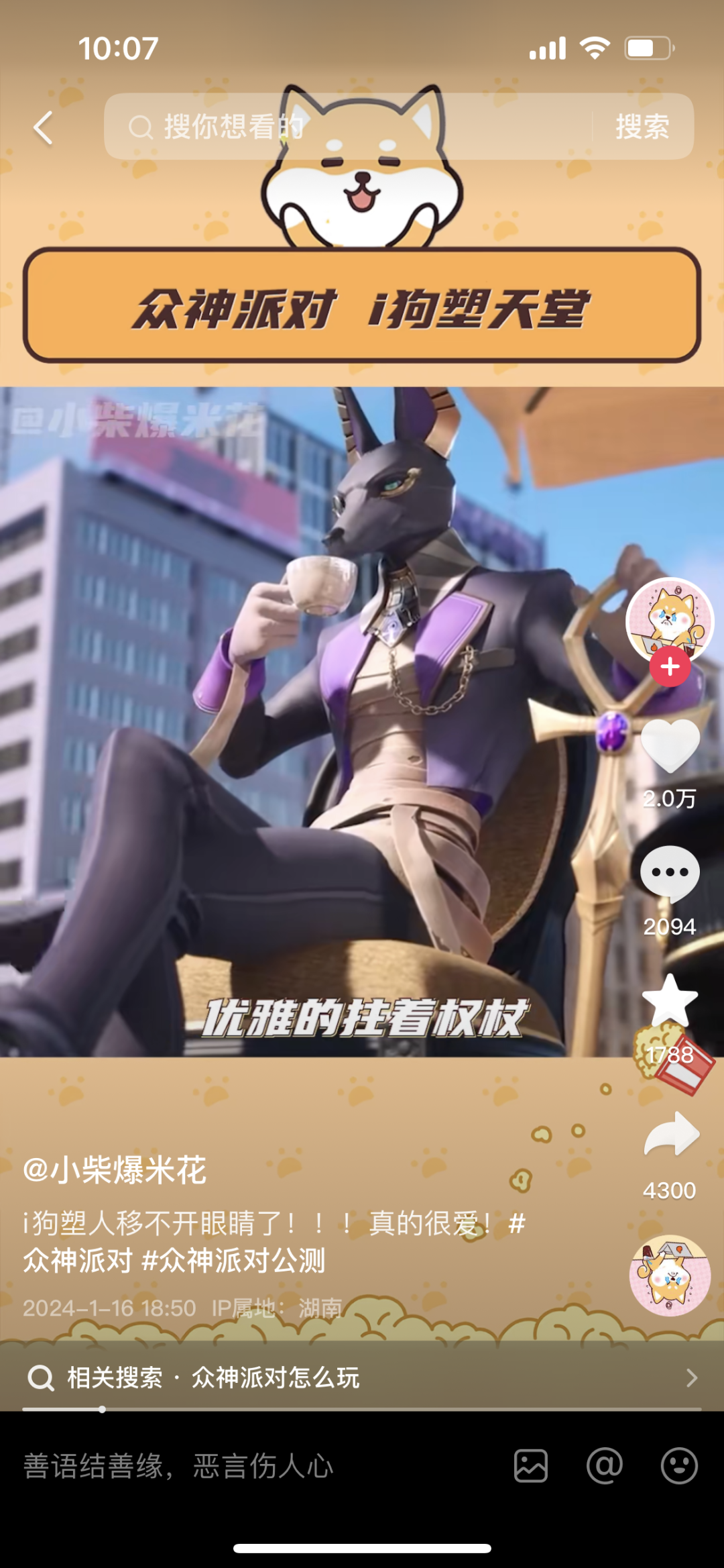 在短视频平台,则是交由百万粉丝量级的主播进行《众神派对》趣味性内容的创作。