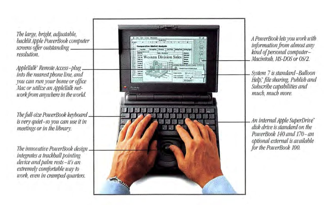 在便携性个人电脑领域,也就是我们俗称的「笔记本电脑」市场,苹果在1989年才推出相应的产品,Macintosh Portable。这款电脑无论是性能表现、电池设计和便携性处理上,都出现了相当多争议,最终,Macintosh Portable以全球仅1万台的销量,草草收场。