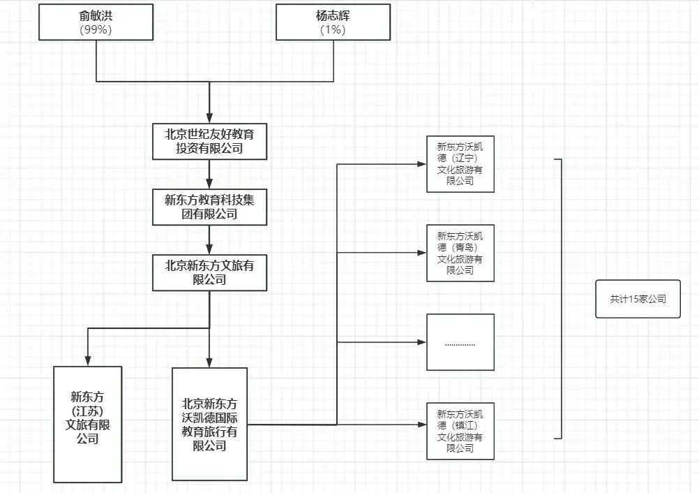 根据企查查公布信息,新东方文旅隶属新东方-S,下辖新东方(江苏)文旅与新东方沃凯德两家公司:俞敏洪畅想为江阴老家做点贡献时,计划成立徐霞客旅游学院,新东方(江苏)文旅已经预留了位置;新东方沃凯德管理星散在全国的15家旅游公司,亦便于全国拓展业务。