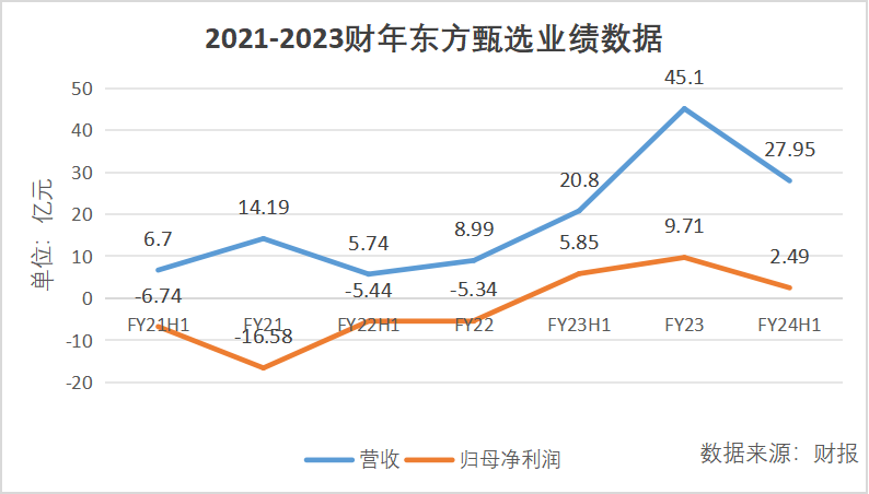 1月24日,新东方发布截至2023年11月30日未经审计的2024财年第二财季业绩报告,营收8.696亿美元,同比增加36.3%;股东应占净利润3006.6万美元,同比增加4007.4。同期,东方甄选营收27.95亿元,同比增长34.4%;净利润2.492亿元,同比下降57.4%。