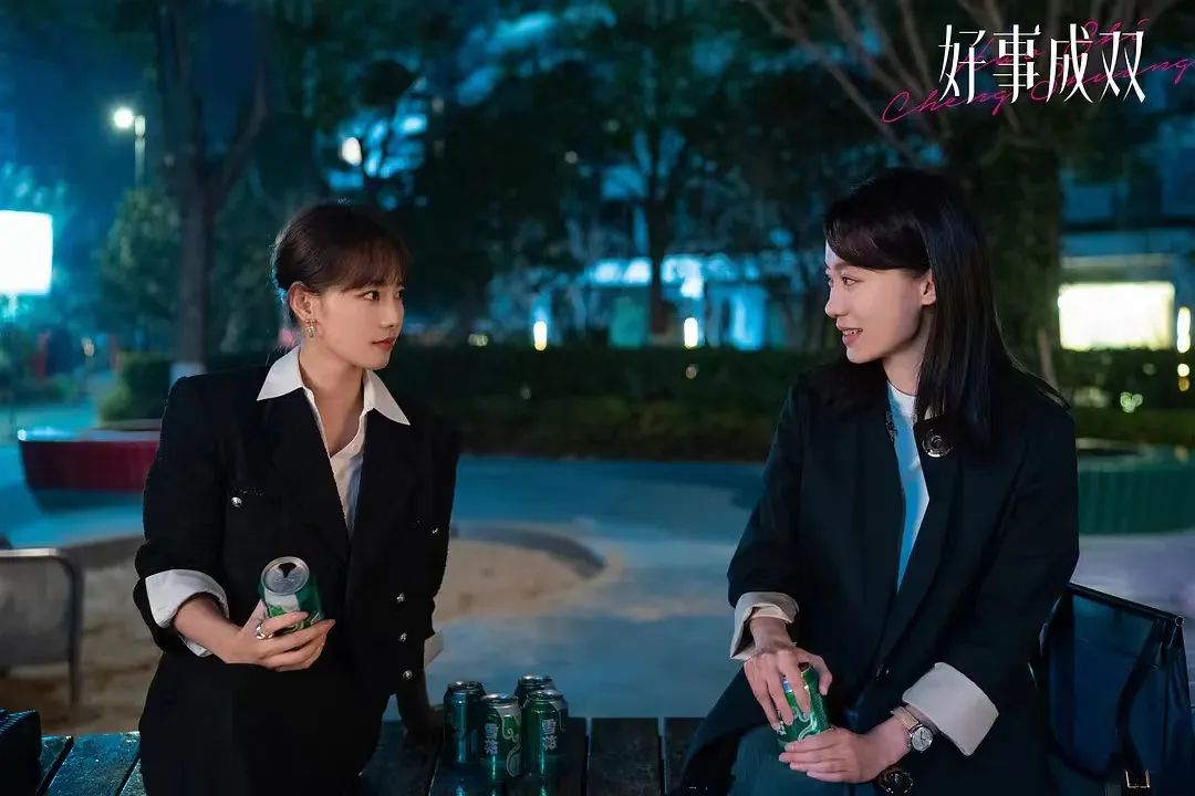 直到《好事成双》,复仇叙事出现了变体——提供爽感的对象切换了,从“狗男女都没好下场”变成“女女联手打渣男”。它保留了复仇叙事中对出轨男人的仇恨,但又试图融入另外一个流量密码——搞姬,希望最大程度上满足各种不同口味的女性观众。但这两者捏合起来难度不小,双女主的情感推进总是围绕着坏到底的男人来进行,本身是对“搞姬”氛围的严重破坏。