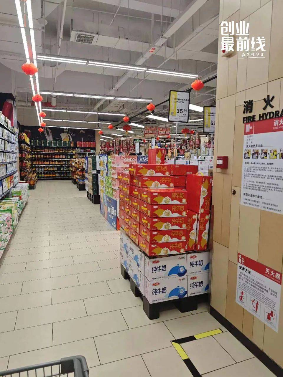 不仅是奶粉品类,完达山的其他产品线也并不多见。「界面新闻·创业最前线」记者走访廊坊市固安县内三家商超,发现有两家商超甚至从来没有上架过完达山的相关产品,而有完达山产品的商超,其产品也只占据液态奶货架上一个角落位置。