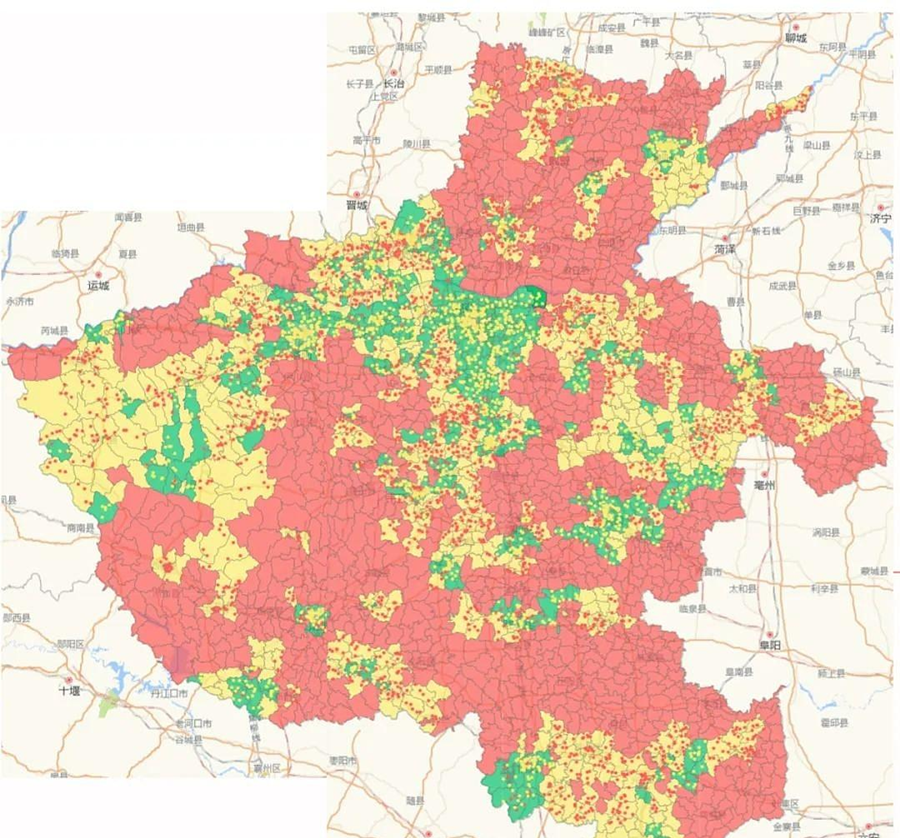 2023年10月河南省公布的电网承载力“红区”地图(来源:河南省能源大数据中心)