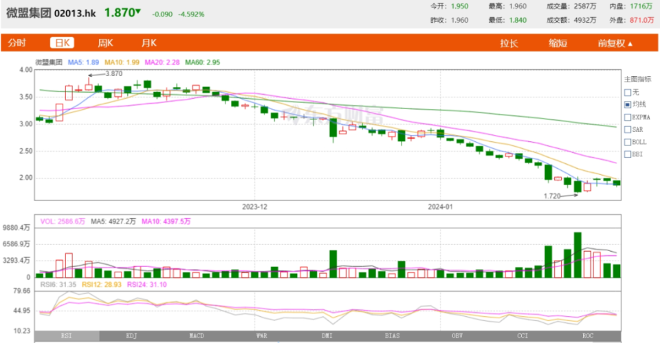 1月24日-26日,微盟创始人兼CEO孙涛勇累计斥资1056.58万港元(约合970.41万元人民币),增持公司545.4万股股份,占总股本的0.19%;其还在公告中强调,增持出于对集团发展前景和增长潜力的信心,不排除合适时机进一步增持。但1月25日-26日,微盟股价累计跌幅达5.56%,看来投资者们似乎并不买账。