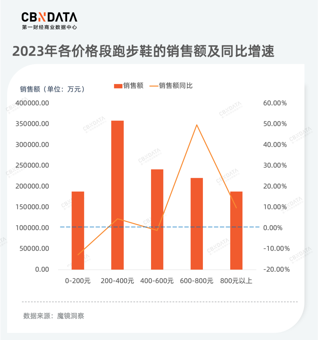 跑步作为一种低成本投入、低场地限制、低进入门槛的休闲运动,同样在2023年备受消费者欢迎。魔镜洞察数据显示,跑步鞋销售额同比增长6.7%。随着跑步场景的日渐多元,消费者对跑鞋的功能提出更多要求,助推了跑鞋消费的升级,CBNData发现,600以上高价位跑鞋销售额增速远高于中低价位跑鞋。