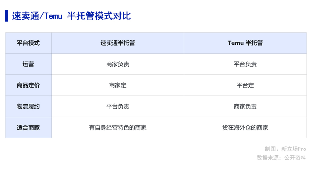 分别来看,速卖通的半托管就是原 POP 模式的物流升级。平台重点负责仓储物流,并提供运营支持,给到商家的自由度更大。