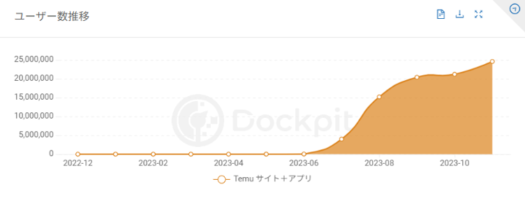 日本消费互联网媒体Manamina引用调查公司Dockpit数据,通过对Temu官方网站访问者以及App用户共同推算,截至2023年11月,Temu日本用户数达到2460万人。