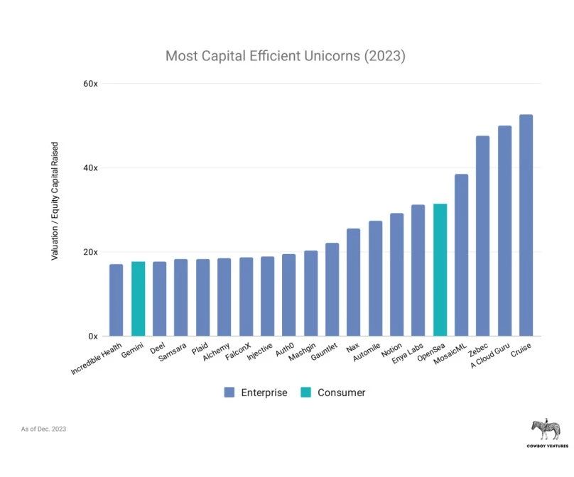 2、约20%的独角兽,资本效率不到4x甚至更低。