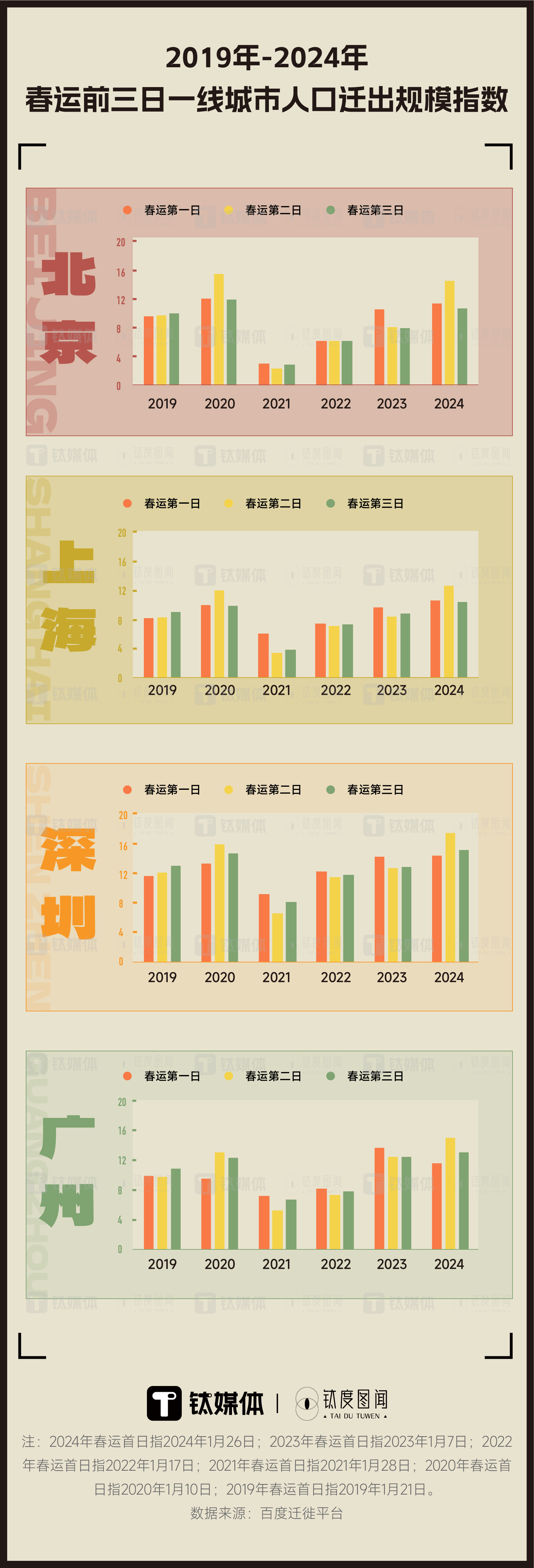 春运开启,全国各地的出行热度如何?人流量是否恢复至2019年同期水平?一线城市的人口流动趋势如何?本期钛媒体·钛度图闻带你关注。