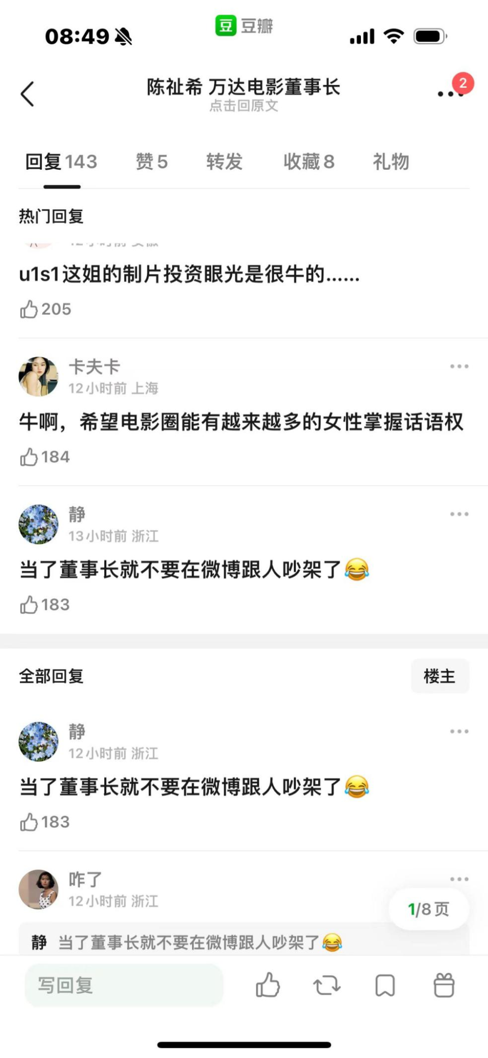 但依然吸引到了不少关注,网友辣评陈祉希入主万达——“当了董事长就不要跟人在微博吵架了。”