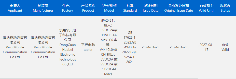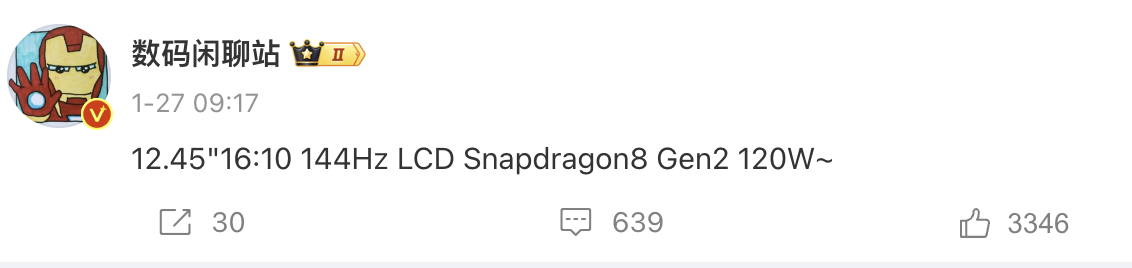 近日,@数码闲聊站曝光了一款安卓平板的参数:12.45英寸144Hz LCD屏幕、骁龙8 Gen 2芯片、120W快充。更早些时候,一款型号为“24018RPACC”的小米平板电脑出现在了国家质量认证网站上,暴露出它的最高充电功率为120W。现在看来,它们是同一款产品。