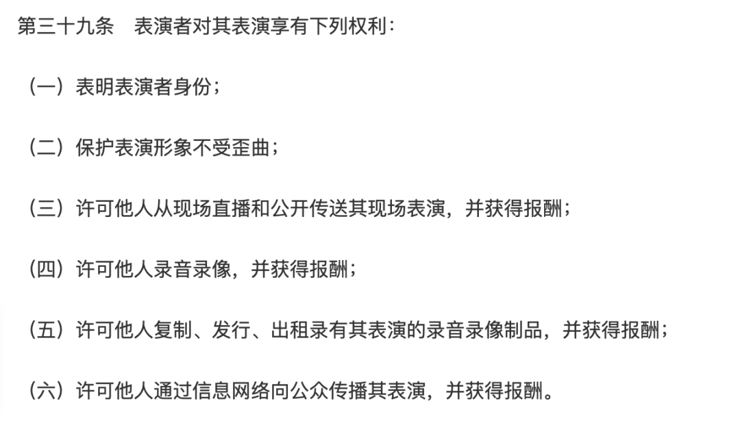 但据律师朋友透露,为了便于之后许可,国内大部分唱片公司基本在制作的时候都会将“表演者”的权利买断,表演者只保留身份权利和收益权利,对外由唱片公司统一行使权利。