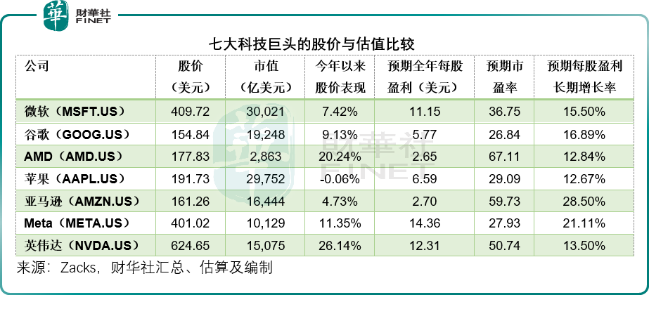 其中微软(MSFT.US)、谷歌(GOOG.US)和美国超微公司(AMD.US)将于2024年1月30日盘后公布业绩,苹果(AAPL.US)、亚马逊(AMZN.US)和Meta(META.US)将于2024年2月1日盘后公布业绩,而英伟达(NVDA.US)将于2024年2月21日盘后公布业绩,见下表。