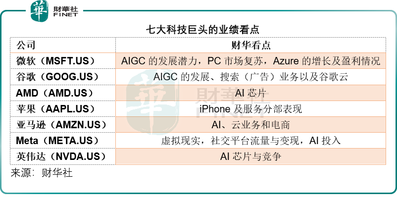 巨型科技企业的业绩季已拉开帷幕,AIGC、经济增长(广告业务表现)、回馈股东仍将是市场关注的焦点,不过,不排除这些领先的科技公司会带来一些新的技术灵感,对未来的市场带来影响。除了当季业绩之外,市场更关心的将是这些公司对于未来的展望以及下一个财年的业绩指引。