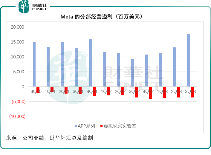 在上一个季度(即2023年9月财季),Meta的季度收入同比增长23%,得益于广告复苏带来的增长推动和节省成本带来的效率提升,其季度净利润按年增幅更高达164%。