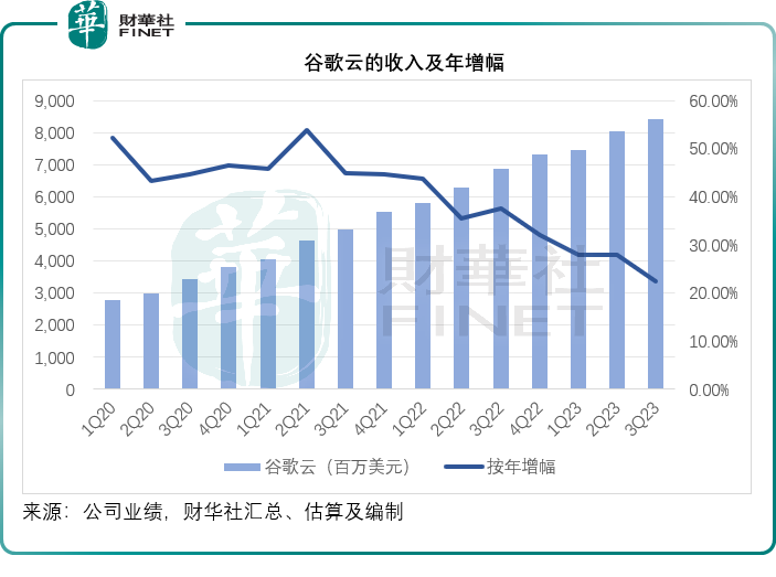 除了广告业务外,市场最关心的还是谷歌云的表现。谷歌云上一季收入增长强劲,经营业绩也有所提升,但是低于市场预期,市场对谷歌云的期望很高,希望其有超越亚马逊以及拉开与微软云距离的魄力。谷歌云上一季的收入增速有所放缓(见下图),最新一季的收入是否会有改善,将是业绩的重要看点。