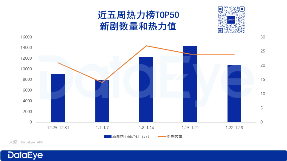 2、新剧投放情况:新剧投放力度较强,热力榜TOP 50占比近半