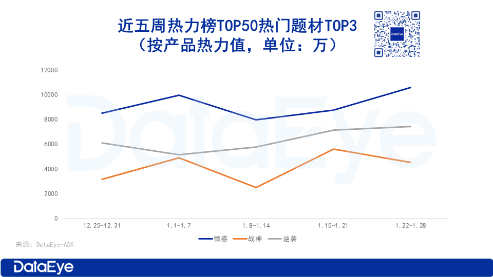 02 热门题材:情感、逆袭和战神包揽TOP3,神医、玄幻题材热度飙升