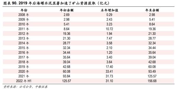图: 2 019 年后海螺矿山资源储备,来源:中银证券