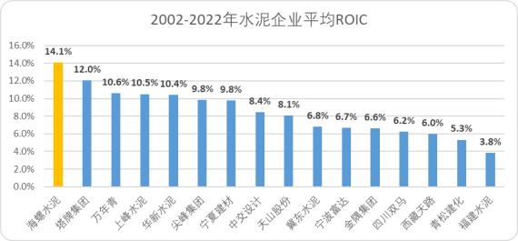 图: 2 002-2022 年水泥行业平均 R OIC ,来源:网络信息,锦缎整理