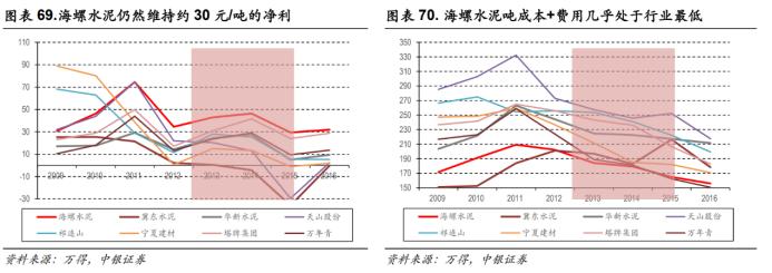 2012年之后基建降温,加之水泥行业整体产能过剩,水泥行业面临“最悲观”的下行周期,此时海螺收购港口、建设配套余热发电设备带来的成本优势被放大,最低谷时仍可以保持30元/吨净利润,因此有足够的资本支持其在2013年进一步逆周期布局。
