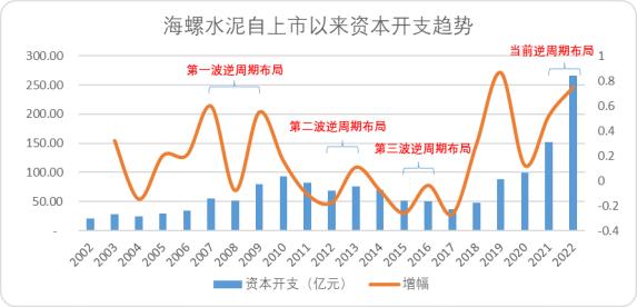 图:海螺水泥自上市以来资本开支趋势,来源:网络信息,锦缎研究院
