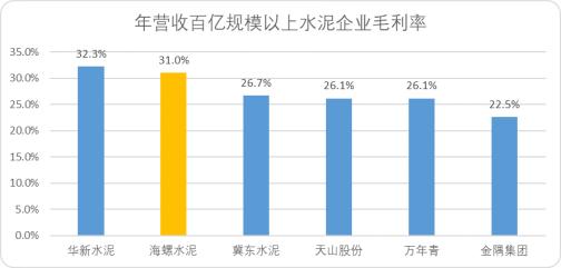 受益于此,海螺的单位原料成本是同业最低级别标准,规模以上(年营收过百亿)水泥企业中近五年毛利均值位居第二,千亿规模以上的同业当中毛利率排名第一。