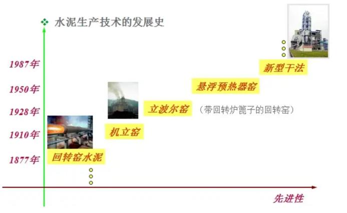 经过了150年工艺演进,水泥制备经历了回转窑水泥、机立窑、湿法窑、半干法回转窑(立波尔窑)、干法窑(包括悬浮预热器窑)、以及现代水泥最为常见的新型干法制作工艺。
